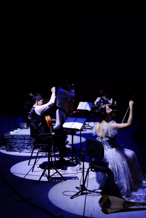 除了他们之外,还有三位女性演奏家,分别是竹琴演奏家张玉坤,二胡演奏家刘晓桐,琵琶演奏家刘卉。