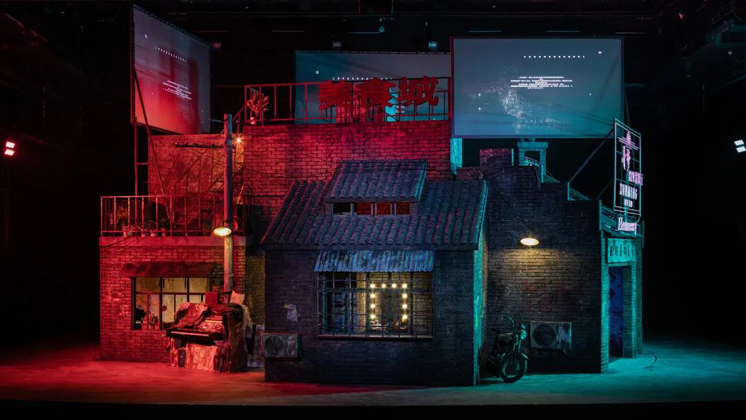这个故事的背景发生在上个世纪末尾的重庆,所以舞台的建筑风格,搭建背景都很符合山城的特色。而在舞台表现上,利用了蒙太奇的手法,以电影视觉的效果,将这个有十四个空间的三层建筑,完美展示给观众们。