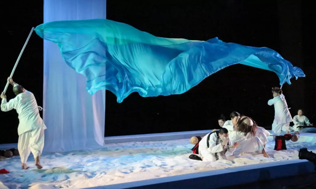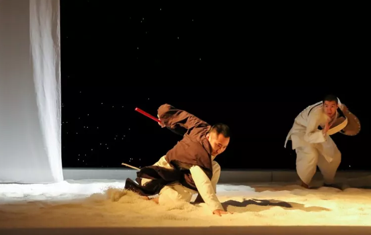 除了面具外,本场演出还有很多抽象化的场景处理。例如,其实沙和尚的由来,大可追溯到玄奘史实上独穿沙海,而在本场演出中,我们也将看到茫茫白沙中,师徒四人降妖除魔的场面。