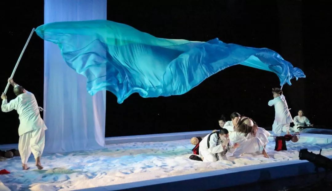 而在打造这部新国剧时,黄盈导演翻阅了许多关于玄奘西行的文学典籍,进一步了解玄奘西行时所受到的艰难险阻。在本场演出中,为了更加直观的体现出玄奘西行的艰辛。他还特意将沙海呈现在舞台之上,以此打造了玄奘穿越沙海的场景。