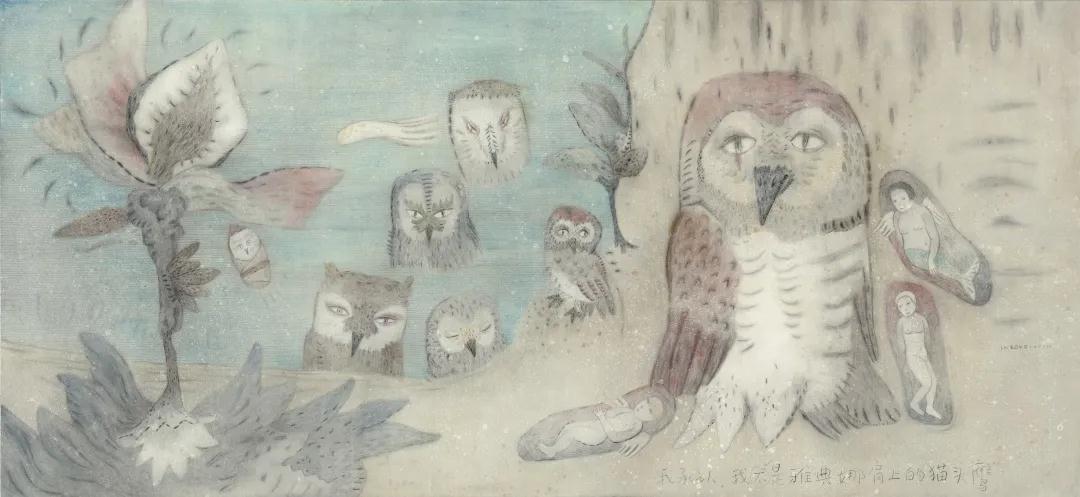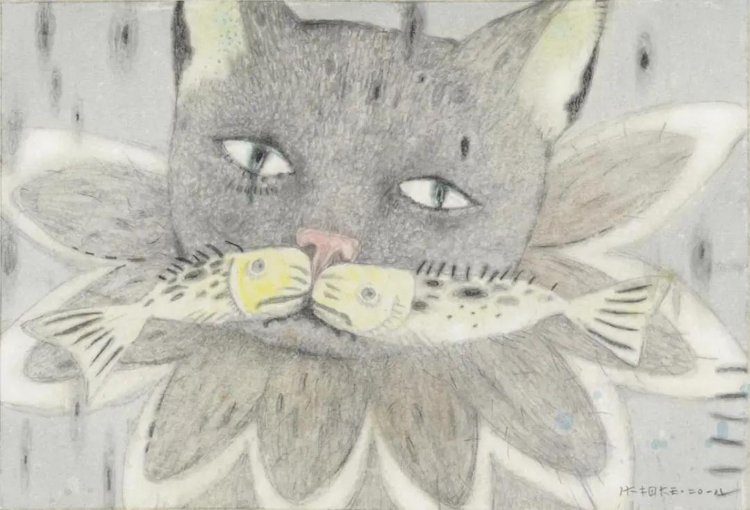 这便是张天幕的绘画风格,看似可爱,实则忧伤、危险,就像是此次展览的名字一样,”装可爱是一种毒药“,可爱是装的,毒药才是本质。