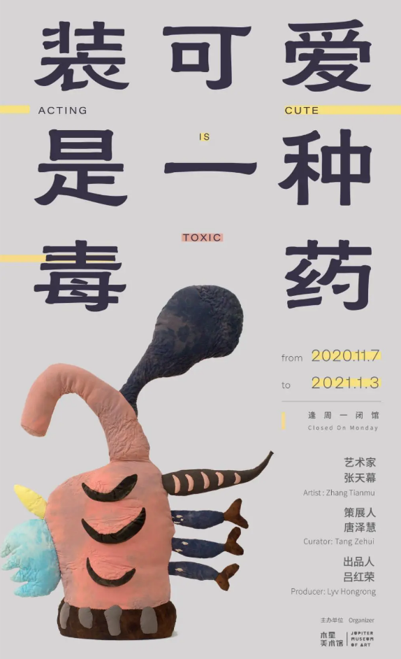 木星美术馆将于2020年11月7日起,推出“装可爱是一种毒药:张天幕个展”,让我们在2020年11月7日至2021年1月3日期间,来到装可爱是一种毒药深圳艺术展,一睹艺术家张天幕的创意展品吧!