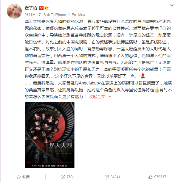 与此同时,粉丝们也赞扬了angelababy今年在网剧《摩天大楼》的精彩表现。据悉,2020年播出的《摩天大楼》,是由郭涛、杨子姗领衔主演,Angelababy特别主演的都市情感悬疑网剧。在这部网剧里,angelababy扮演受害人钟美宝,所有的故事和谜团,都是围绕钟美宝而展开。