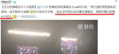 想必大家都知道,在7月1日,王力宏的工作人员在微博上表示到:做晚在深圳演唱会上CUE宋小宝,有个蛮好笑的朋友在现场,这不就是宋小宝嘛?宋小宝也不示弱:“这么多年我从来没看过演唱会,我是听着力宏歌长大的人。”很多网友看到,王力宏工作室发文,也是纷纷表示到,宋小宝的回复也是劲爆啊,简直就是幽默,尤其是最后的一句“我是听着力宏歌长大的人”不过从这句话也能体会到,宋小宝是真的对王力宏的歌非常喜爱。