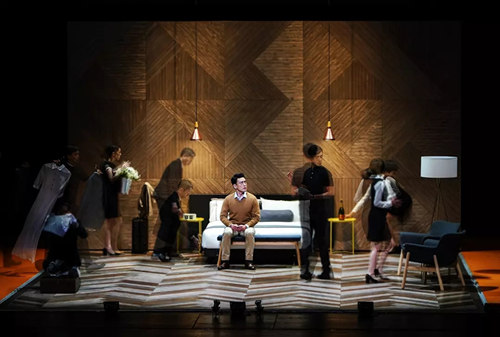这次的2018非常林奕华之《聊斋》北京站的形式很特别。片名中文《聊斋》、英文《why we chat》(我们为什么聊天),在表演中时时能发现与聊斋、与we chat APP相关的元素。一个很特别的点在于,同一场景中的人和对话,并不一定是真实发生的,也不一定是同时发生的。这种交错感从第一幕就开始了,然而观众往往要看了几幕才反应过来。