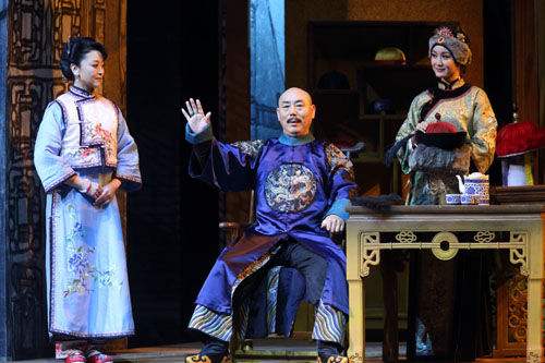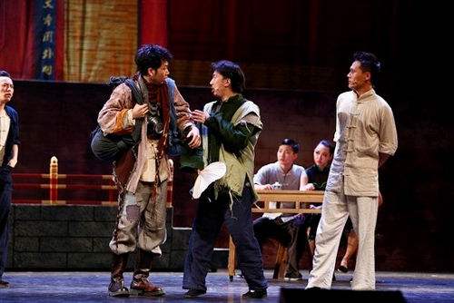 这次剧中使用的音乐包括三种类型,一种是以京剧唱腔旋律为代表的中国传统音乐,一种是创作的流行音乐形式的独唱和对唱,一种是借用原有流行歌曲的翻唱。传统音乐彰显的是故事环境人物背景以及整体的格调,形式成分居多;流行音乐主要用于抒情、对白、情节交待,内容成分居多;翻唱音乐主要用于搞笑、形成爆点,给演员表演空间,功能成分居多。三者运用丰富多彩,独立而统一,形成独特的音乐剧风格。