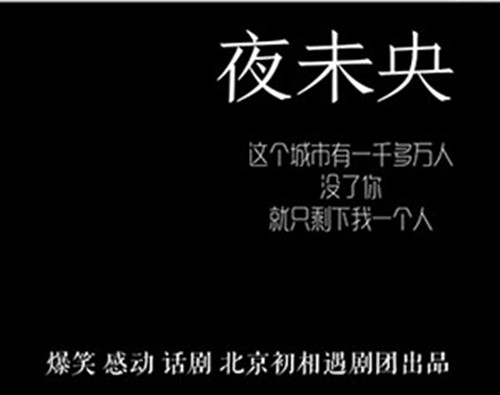 话剧《夜未央》,依旧全场的笑声与感动。初相遇剧社颠覆以前的角色,创造令你惊喜的感觉!他如何兑现她的约定,精彩巧妙的剧情——不缺笑声,也要刺激。出色的演员。男演员不惜成本女演员精挑细选。求笑声,但是拒绝恶搞与廉价。我们需要真正的笑声,话剧不都是恶搞,我们要让你看到真正的笑声,更要让你看到真正的感动。