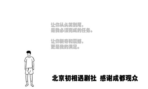初相遇剧社是北京崛起的演出团体,专注于话剧演出。五年多以来,已经奇迹般的演出接近六百场,并且场场爆满,经常有观众自愿站着把戏看完,津津有味赞不绝口。看他们的戏,不后悔。去年开始在成都演出,以强烈的喜剧风格引起观众巨大欢迎。