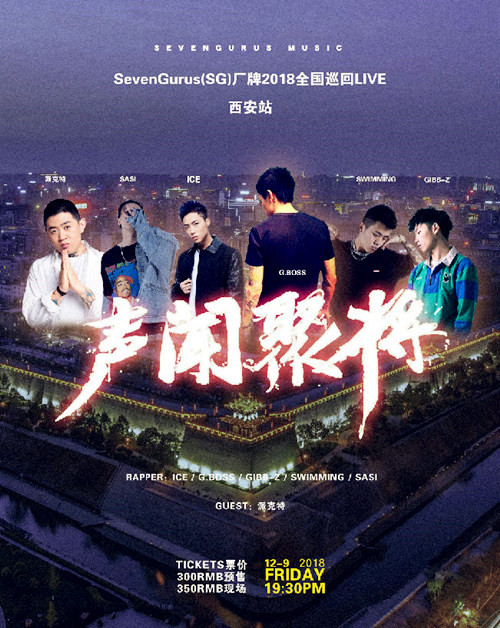 此次演出嘉宾阵容极为豪华。(SG)厂牌Rapper们将全部登台亮相,中国新说唱三强:ICE、Overlxrd组合:连麻Swimming&SASI、“嫩肤小帅帅”Gibb-z以及SASI等等最时尚最潮流的说唱大咖、新锐齐聚西安。届时(SG)厂牌主理人GBOSS也将登台献唱,当下《中国新说唱》全能王“派克特”也将空降现场,快来纵情狂欢吧!