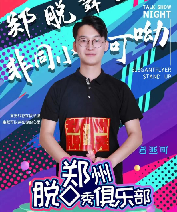 其中,吕亚可长相白净、斯文,但是他硬是凭借自己精彩的脱口秀表演,走出了一条不寻常的道路,成为了郑州脱口秀俱乐部中“黑粉”最多的男人;