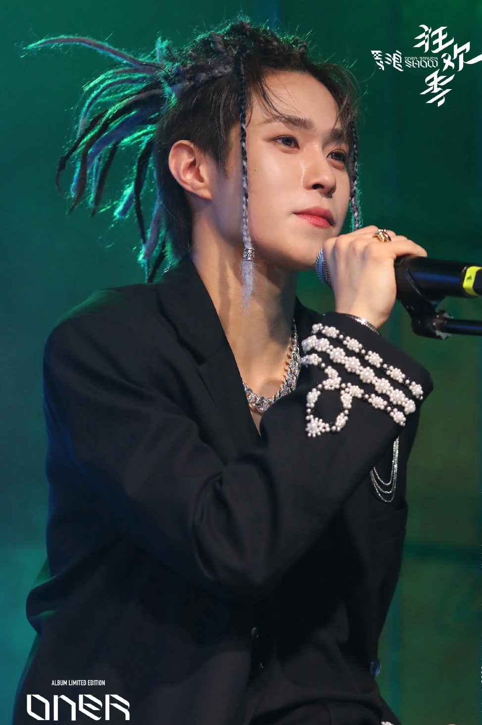 在杭州演唱会上,ONER虽然全员都是一袭黑衣,但发型各有不同,脏辫造型的岳岳十分鬼马,韩系粉发的灵超是妥妥的“忧郁”美少年,而木子洋则是额发微湿,青春四溢。