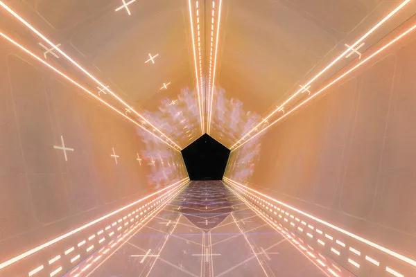 维度视界是一个由LED屏幕组成的五边形隧道,LED屏幕的图案是动态的,可以带给人们强烈的视觉冲击;