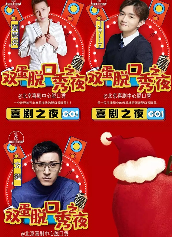 脱口秀是一个离不开线下的艺术形式,它的魅力需要观众亲自到现场沉浸式体验,也只有身临其境,才可以欢乐加倍。北京喜剧中心圣诞狂欢深夜秀北京站,给你的快乐加倍!