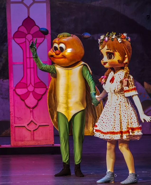 除了具有教育意义的剧情,该剧中的木偶元素,也运用得十分巧妙,每一个角色,都拥有独特的人物特征。例如拇指姑娘的花瓣帽子,金龟子长长的胡须等,这些生动可爱的形象,可以吸引孩子的注意力,让孩子沉浸式的观看音乐剧。