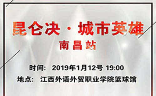 本次昆仑决城市英雄走进江西南昌,2019年1月12日在江西外语外贸职业学院篮球馆举办。南昌赛区职业成人组邀请赛的级别为:56kg-80kg(56kg、60kg、65kg、70kg、75kg、80kg),各级别冠军有机会参加昆仑决城市英雄年终总决赛。