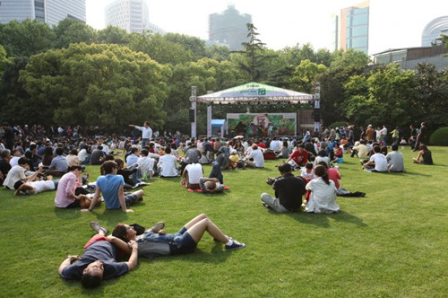今年的“爵士春天”依然以静安公园为中心,同时在静安寺广场、芮欧百货广场、商城剧院三地奏响。除商城剧院,其他场地均免费开放。无论坐着躺着还是站着,“摇”才是王道。