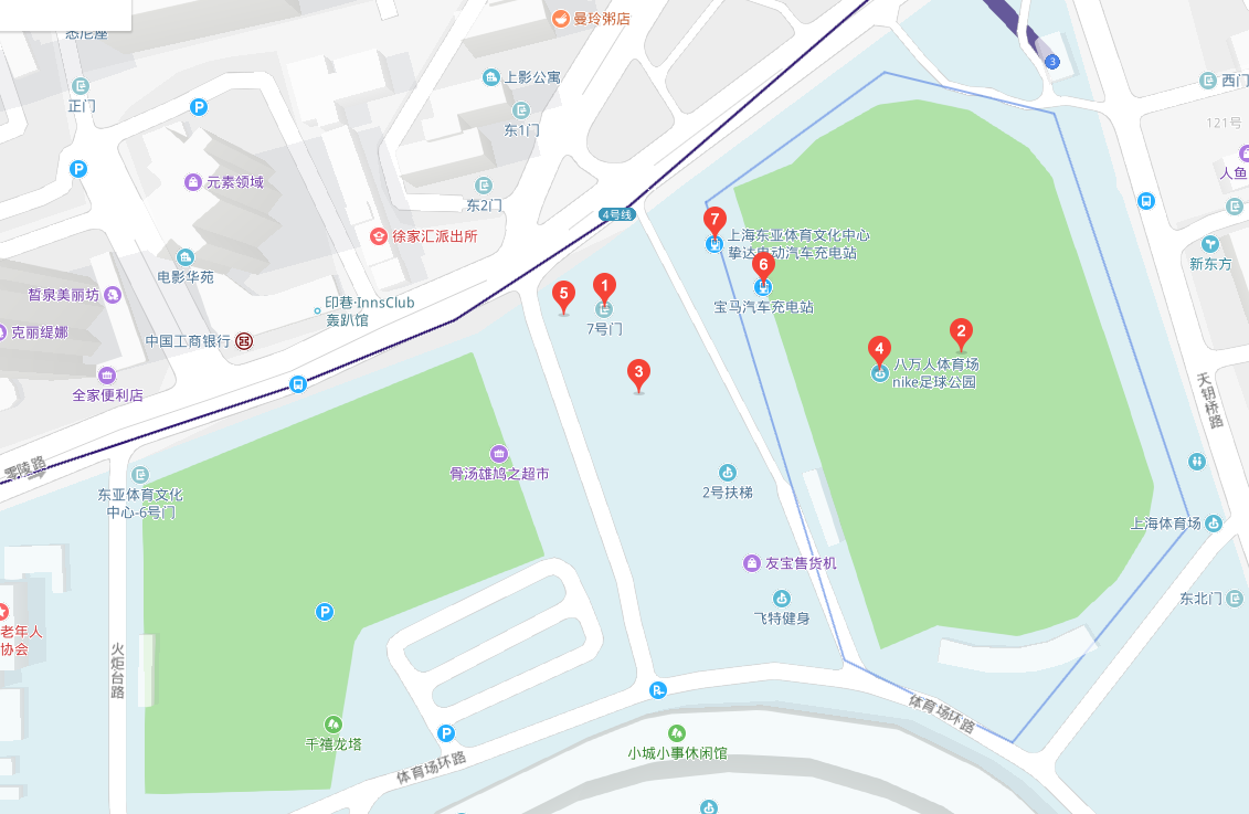 自驾直接搜索上海体育场(图示附近停车场)