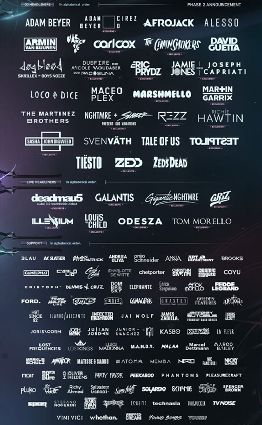 ULTRA China 现已正式揭晓了上海站的超豪华的演出阵容,其中包括了Afrojack、Armin van Buuren、Axwell ^ Ingrosso、DJ Snake、Eats Everything、Galantis、John Digweed、Nicky Romero、Oliver Heldens、Steve Angello、Tchami、Zedd 等近四十组艺人,涵盖了House、Trap、Trance、Techno等多元化的音乐风格让无数乐迷感受到直击灵魂的愉悦。
