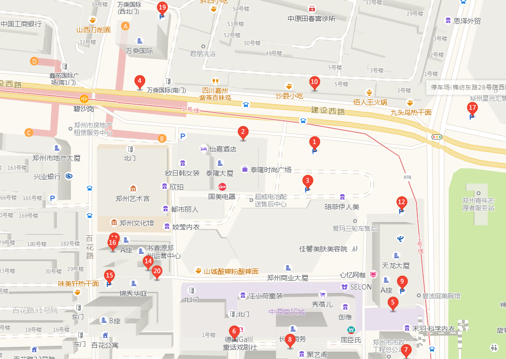 自驾搜索郑州象剧场(原郑州艺术宫),图示附近停车信息: