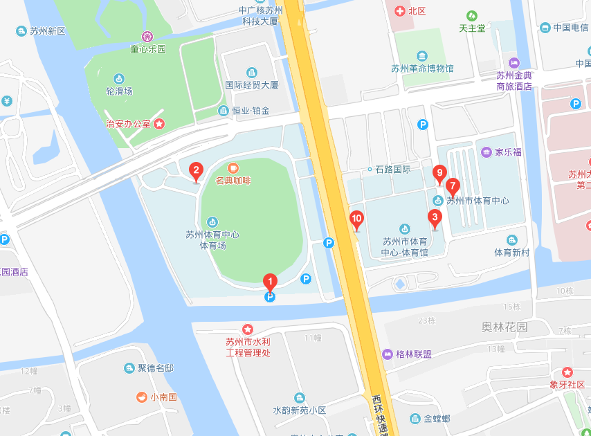 自驾直接搜索苏州奥林匹克体育中心体育馆(图示附近停车场)