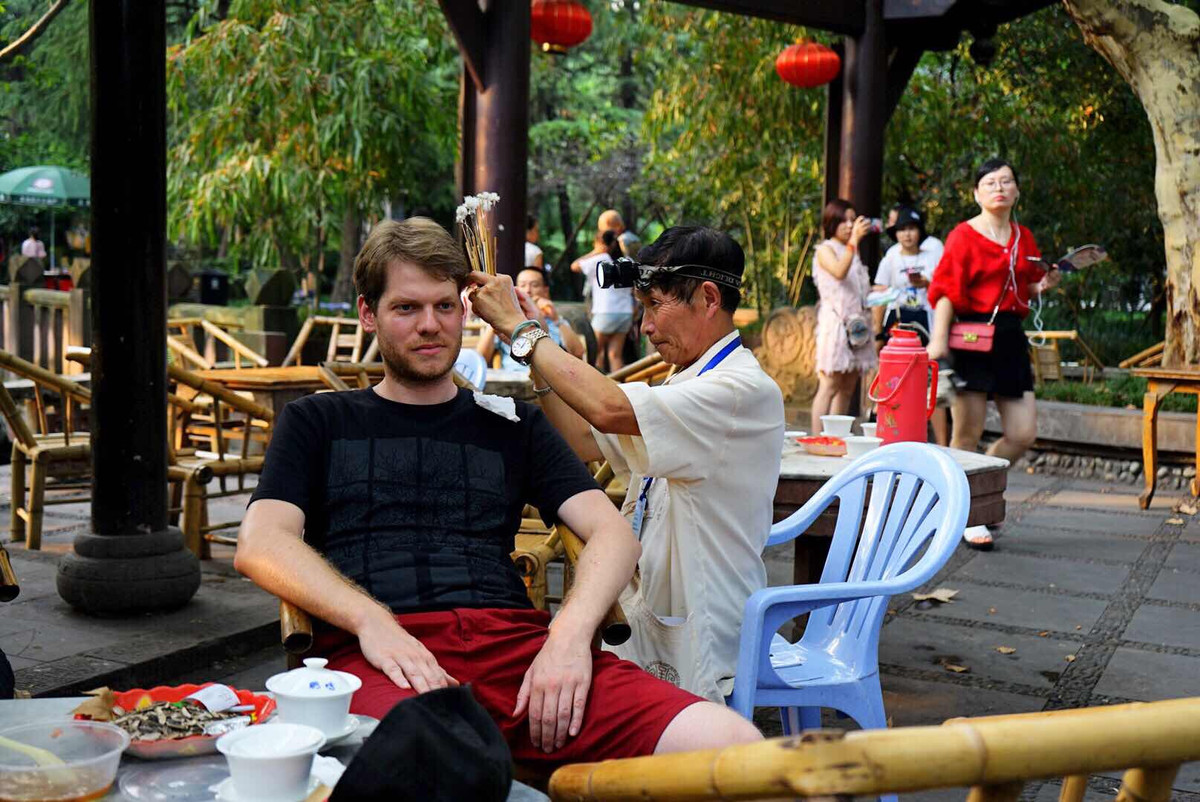 外地朋友还可以感受一下成都的茶馆文化。成都现在的茶楼、茶馆有3000多家,从装修豪华的高档茶楼到路边的小茶馆应有尽有,消费从上百元到几元不等,生意都很不错,这在全国可是绝无仅有的。在人民公园还可以体验一下成都特色“掏耳朵”,不要太爽哦!