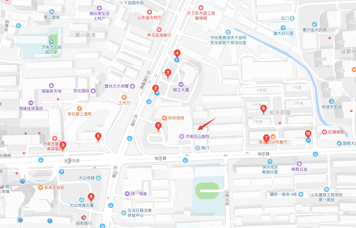 自驾直接搜索济南历山剧院(图示附近停车场)