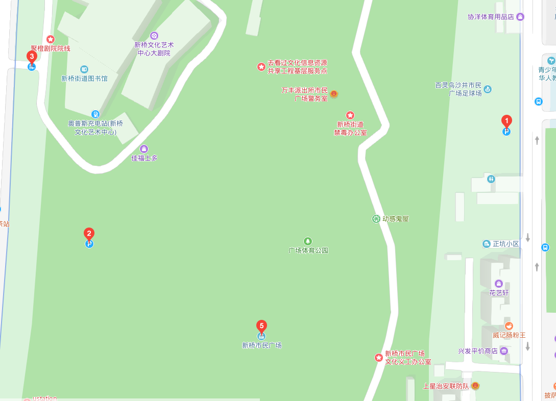自驾搜索新桥文化艺术中心(图示附近停车信息)