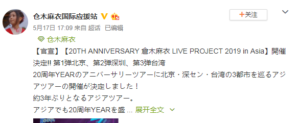 仓木麻衣2019亚洲巡演就要开始啦~网友们纷纷评论想去,好期待呀,你期不期待呀,想去的话就赶紧抢票吧~~