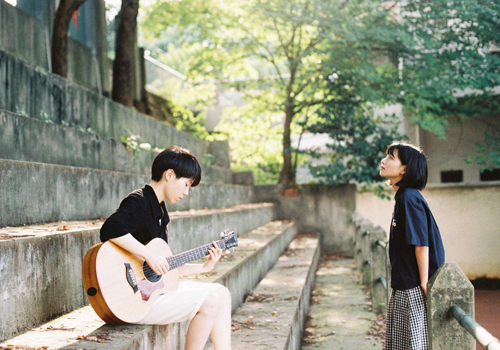 可能,对于很多人来说,只是听过她们的歌曲,还不知道她们在生活中是什么样的。那就听小编我来说一下吧!她们两个人都散着齐肩的长发,那个笑起来如沐春风的姑娘是主唱王心怡,戴着眼镜一头干净利落的短发是酷酷的吉他手吴佩岭,她们两个,一个是学动漫的,一个是学财税的,她们因为一个社团而相识,她们所学专业也都与音乐毫无关系,但是她们就是仅凭着对音乐的一腔热爱,两人一拍即合,成立了这个快乐的民谣小组合。