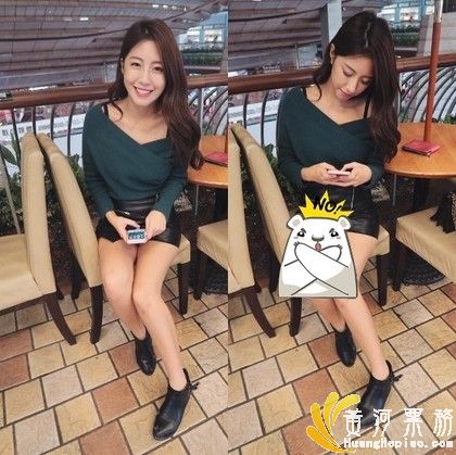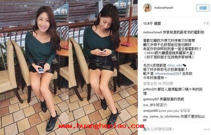 照片中的她穿著超短皮裙,大秀细长美腿,