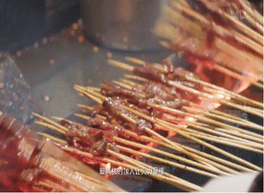 各种食材在烧烤架上呲呲作响,