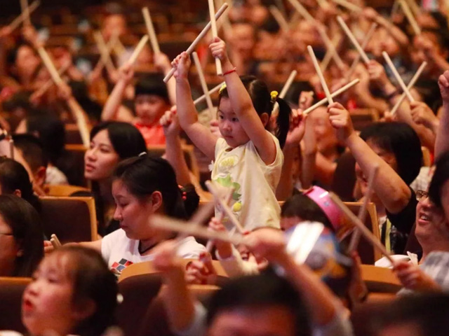 现场的全场互动一起演奏乐曲环节,一直是孩子们最爱的“人气节目”!2019年,我们互动曲目又升级啦!全场大互动不仅有熟悉的《两只老虎》、《欢乐颂》、《麦克唐纳叔叔的农场》,我们更新增了小朋友们都喜爱的乐曲,而且是用手鼓互动哦。全场配合有趣的互动,让我们跟随动感的节奏high起来!