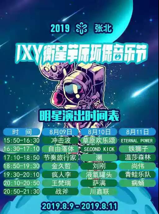 2019衡星草原环保音乐节,于8月9日-11日,为期三天的大型演出即将震撼来袭,你准备好了吗?