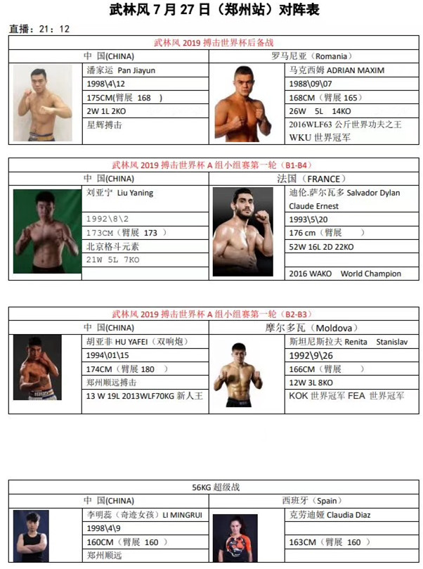 赛火重燃,世界级武林高手齐聚一堂,巅峰对决一触即发。2019武林风搏击世界杯郑州站,究竟谁能问鼎江湖,成为王者至尊,7月27日,让我们共同见证。