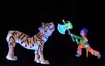 2.演员在窗内操纵影人做各种形象逼真的表演,同时有配音的演唱以及灯光、布景、音乐等烘托,运用黑光皮影技术,将皮影元素展示到淋漓尽致。