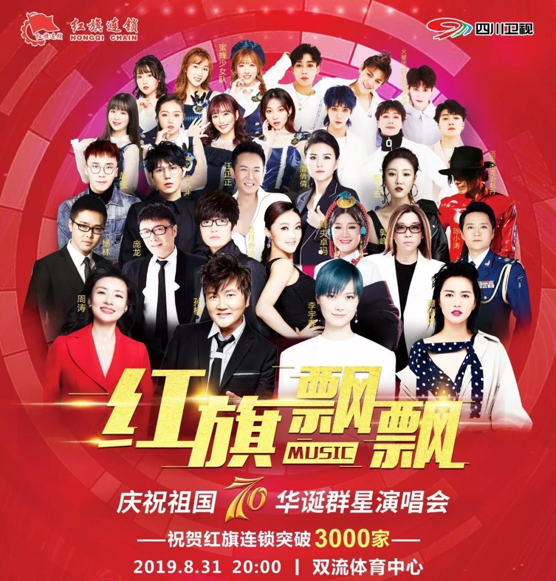 据了解,“红旗飘飘”庆祝祖国70华诞大型群星演唱会将于2019年8月31日晚在成都双流体育中心举行。本次群星演唱会将以“红旗飘飘”为主题,表达对祖国70华诞的致敬与祝福。2019红旗飘飘成都群星演唱会,快来一起为我们的祖国庆祝吧~