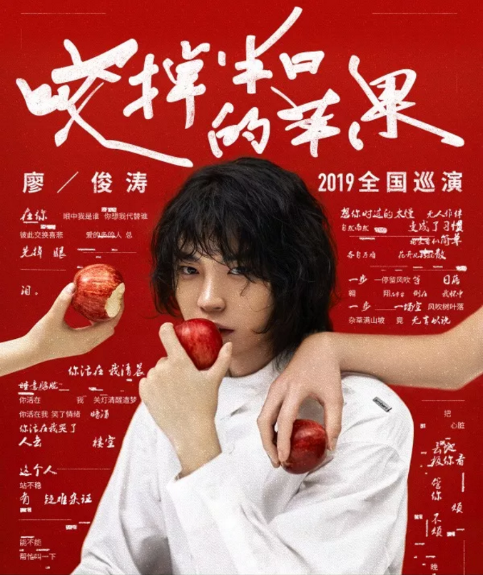 2019年原创音乐人廖俊涛最新迷你专辑《咬掉半口的苹果》,6首歌曲词曲原创。用这张诚意满满的专辑,从廖俊涛自己的爱情观出发。为长久封闭在都市中的人们揭开心锁,并鼓励此刻正在爱情中失去方向的现实主义青年们。即使在了解过爱情的难过、苦涩和伤痛后,也要继续追逐爱、憧憬爱、相信爱。对爱情的渴望不要停止。