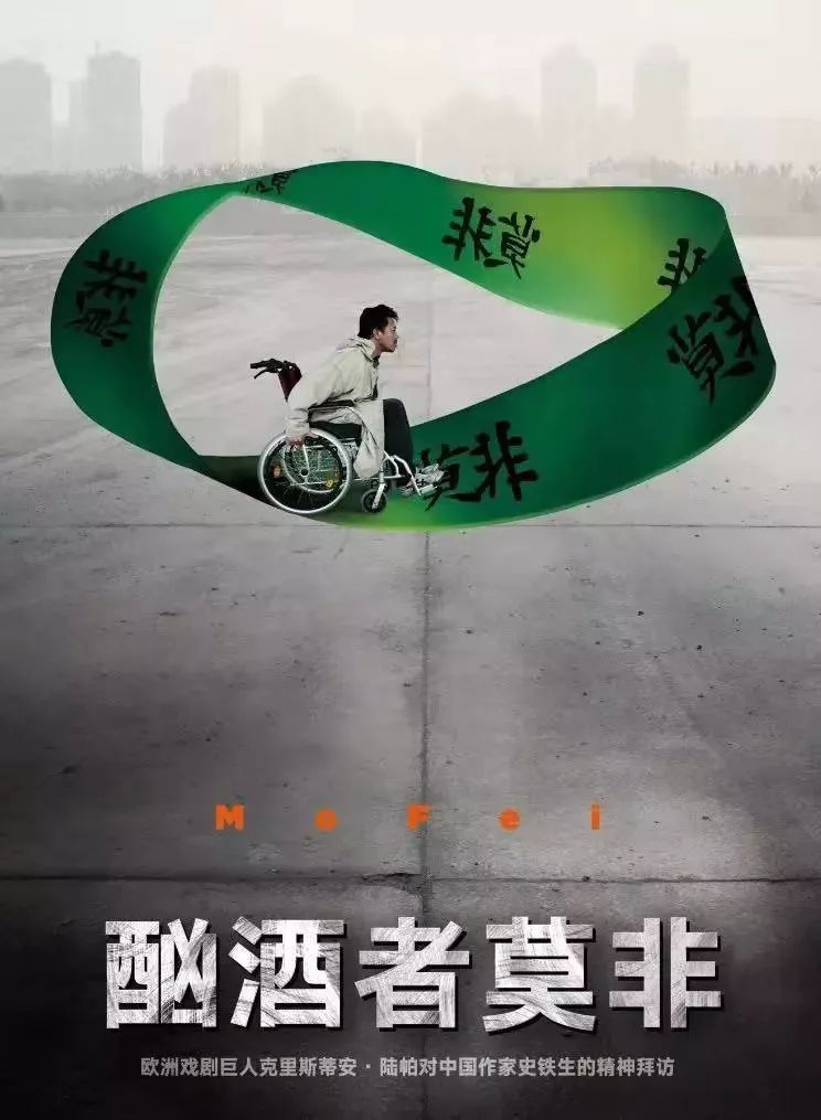 话剧《酗酒者莫非》改编自作家史铁生的中篇小说,这部以剧本体写成的小说有个拗口难记的名字《关于一部以电影作舞台背景的戏剧之设想》。故事讲述一个酗酒者或者是真正清醒的人,在酒精的催动下游走于现实与虚幻、过去与将来之间。整个舞台的背景是电影荧屏,演员是舞台上一个白日梦游的醉鬼。借助酒力,他可以回到过去:看见自己诞生于父母虚伪的婚姻;和童年纯真的自己说话,警告那个还没有长大的欲望,别做出丢人的事;触摸到已经离婚出走的前妻的手……