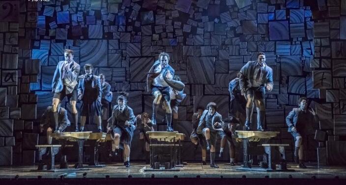 3、即使服装道具在舞台上出现的时间只有几分几秒,但剧组仍然一丝不苟地维护。舞台上所有的舞美道具都反映了玛蒂尔达眼中的世界,积木上的字母也不是随机出现的,而是有序组成一个个单词,比如“book”、“story”等。