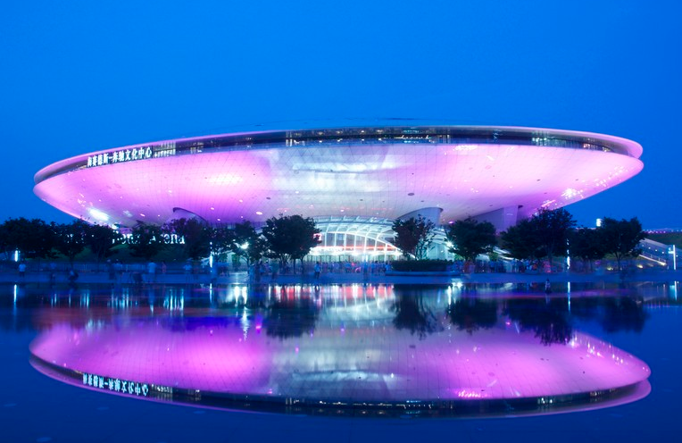 滨江而筑的梅赛德斯-奔驰文化中心以其穿梭腾飞的姿态傲立于2010年上海世博会园区的核心区域,毗邻世博轴与中国馆。整座建筑以其轻盈灵动,宛若飞碟般的独特造型横空出世,犹如一枚“艺海贝壳”,美艳耀世。中心拥有一个18,000座的主场馆,以及音乐俱乐部、电影院、溜冰场、餐厅、零售区域等等。