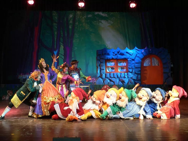 让人值得一提的是,在表演的过程中,白雪公主会走到孩子们中间和他们零距离互动;恶毒王后会来到观众前,让他们目睹她站在魔镜前酝酿一条又一条诡计。还有工作人员,会不时参与进来带动孩子们的热情,让孩子们感到他们也是表演的一部分。
