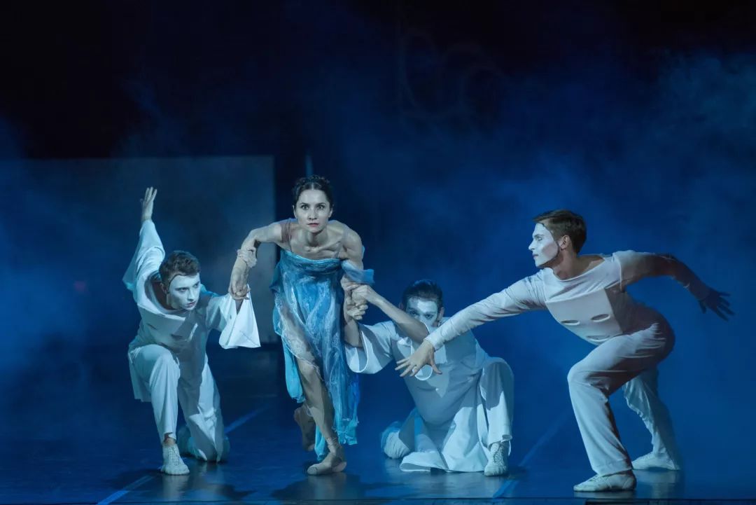 舞台上安娜的服装,以白色、黑色和血红色的不同时间登场,象征纯洁、黑暗与激情,预示安娜命运的几个极端阶段,也隐喻人物内心的复杂层面。安娜是尽职尽责的妻子、慈爱的母亲,也是充满激情的情人。她时而坚韧,时而赤裸而疯狂地投入婚外恋情。舞蹈家为一对偷情的情人设计了旺盛而大胆的双人舞,如火焰一般燃烧的疯狂舞姿,可谓灵与肉在舞台上的燃烧。
