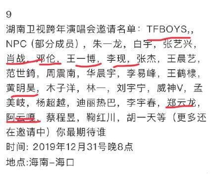 每年各大卫视的跨年演唱会都会吸引观众的眼球,而作为娱乐性很强的湖南卫视更是年年期待值最高的。近日,有微博大V曝出了湖南卫视2020跨年演唱会嘉宾名单,各大鲜肉都将登台表演,本次湖南跨年的阵容还是如以往一样,流量明星、大牌、影帝影后、业界泰斗等都会出现。那么湖南卫视2020年的跨年演唱会又有谁到场呢?