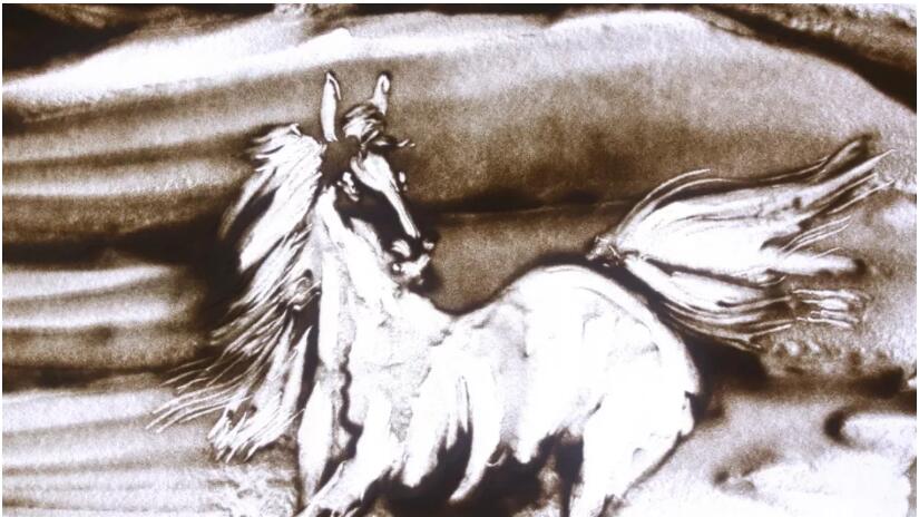 沙画最大的魅力莫过于,震撼人心的艺术形成和消失就在眼前。当一幕幕优美的画作在我们眼前游走,一个个动人心弦的场景快速切换,那千万颗沙粒中,凝聚的是艺术家功力、天马行空的艺术创意,又在瞬间被挥手抹去,重组一番惊奇。或许正是这转瞬即逝的表达方式,反而赋予它更蓬勃的生命力,带给观众强大的冲击力和美好的记忆。