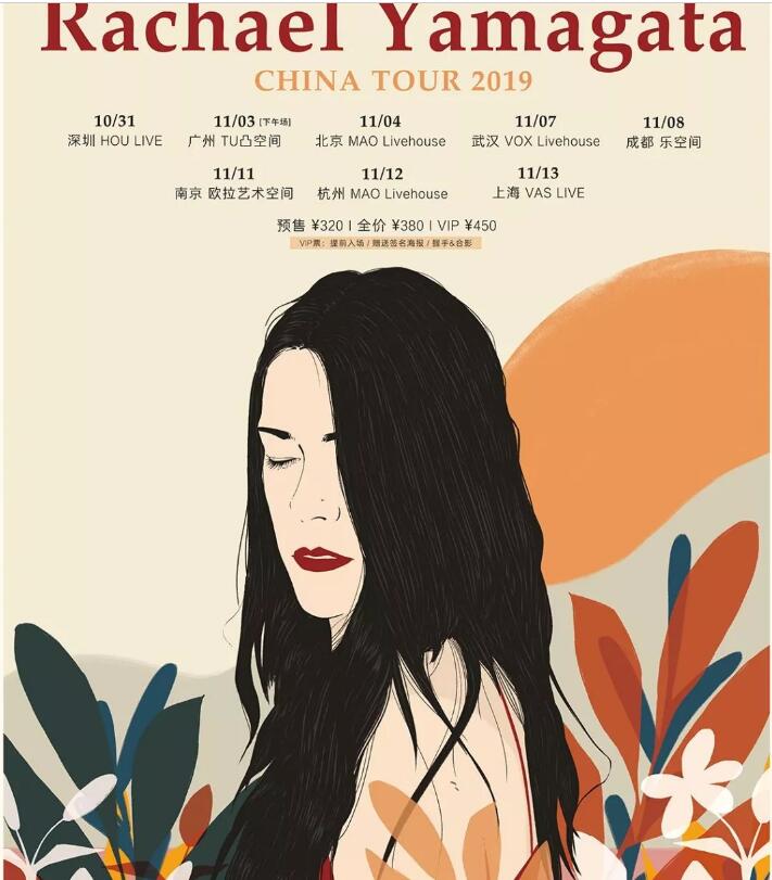美国独立音乐人山形瑞秋 Rachael Yamagata 2019中国巡演,将于10月31日起先后在深圳、广州、北京、武汉、成都、南京、杭州、上海等8座城市开启。作为第4次来华与乐迷共赴“秋日之约”,此次巡演瑞秋将携同完整编制乐队阵容,为中国乐迷呈现还原度更高、更加治愈与饱满的高水准现场。