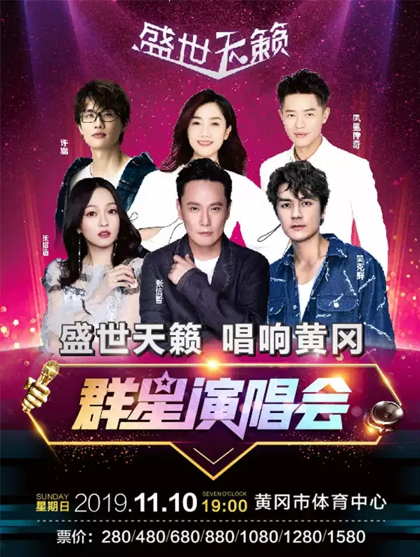 据了解此次演唱会也是黄冈市建市以来首个超级阵容全明星演唱会,有来自于中国台湾的情歌王子张信哲和实力天后唱将张韶涵,青春偶像吴克群,以及中国内地传奇组合凤凰传奇,最佳创作歌手许嵩,以及风靡全国的《创造101》打造的美女天团组合之谈楚然、魏瑾、加减乘除等,均是蜚声神州的超级巨星、实力唱将!!