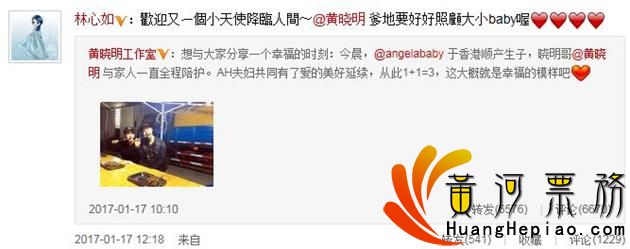 林心如祝福:“欢迎又一个小天使降临人间~@黄晓明 爹地要好好照顾大小baby喔。”