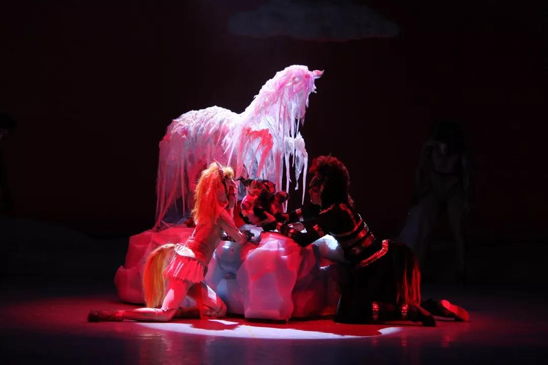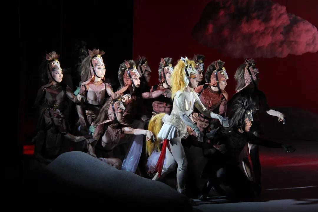 对孩子进行单纯一件事的教育是愚蠢的,重要的是去影响儿童。高级的儿童剧是要从美学的高度给孩子们以影响。因此,在《我的妈妈是匹马》这部剧中,陈薪伊导演提出“让孩子们听名曲,看名画,欣赏名马的故事。剧中一匹名马的故事来自家喻户晓的“马踏飞燕”,马儿一蹄着地,三蹄腾空,右后蹄踏一展翅奋飞、回首惊视的龙雀。马是具有英雄主义的动物,只能活三十五年的马儿为人类背负了太多的责任,在剧中,这些马儿像亲人一样守护着孩子们。