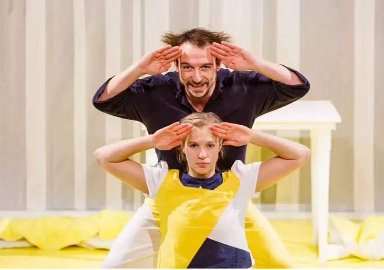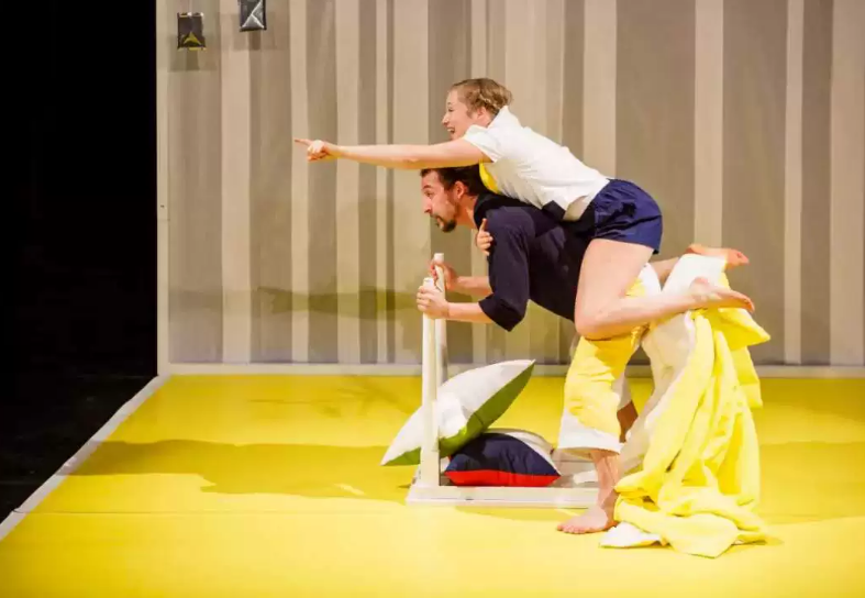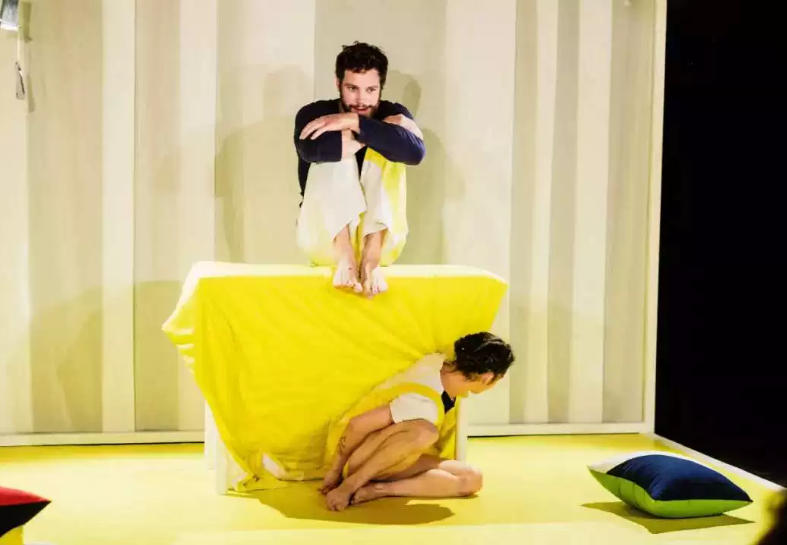 整个演出几乎从无到有,演员们重现了父母们刚刚离开的卧室的气氛。