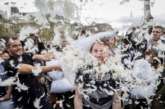 “枕头大战”,起源于美国西点军校的传统集体活动,每年举办一次,标志着夏季训练的完结,其悠久的历史,可追溯至1897年。现如今,这种缓解工作和生活压力的减压聚会方式,早已风靡全球,其具有快速减压、交友、高互动性等特点,是一种新型“软暴力”宣泄模式,容易被内敛的国人接纳。